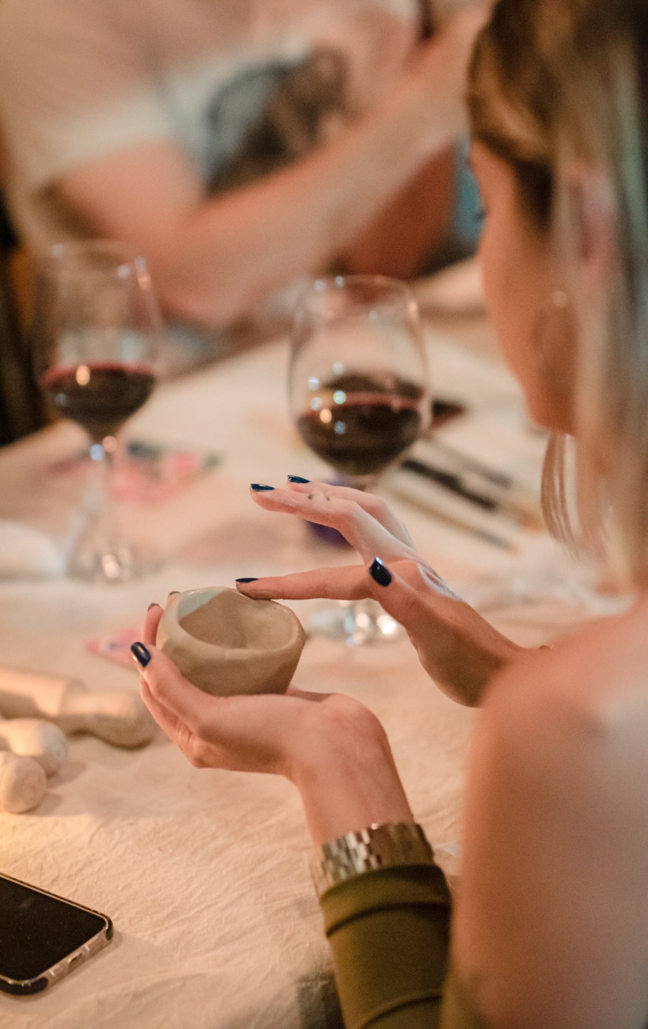 Durante este taller de cerámica de unas 2 horas, aprenderéis a modelar vuestra propia pieza de arcilla de la mano de un/a profesional, en un ambiente relajado y festivo. No hace falta experiencia previa: solo ganas de pasarlo bien, crear y brindar.